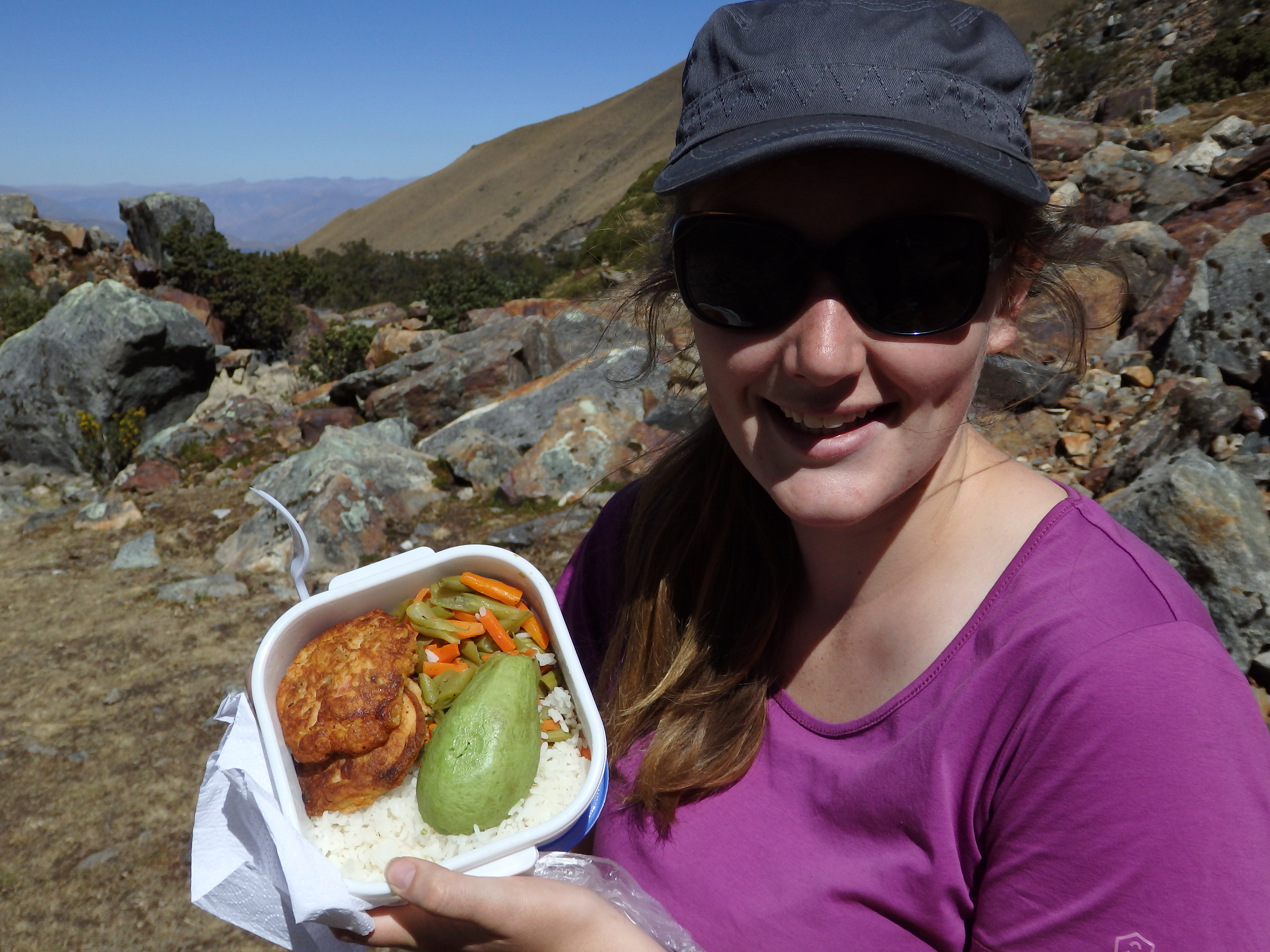 It was still before noon when we arrived, so we took a short 1.5 hour walk up to a nice glacial lake above the camp. We spent an hour or so there and had the lake to ourselves for most of the time. Most tour groups don’t have the opportunity of going to this lake – another bonus of doing the trek with Refugios Salkantay. We had been given a packed lunch by Edwin’s mother that morning, so we laid in the sun and enjoyed the tasty food.