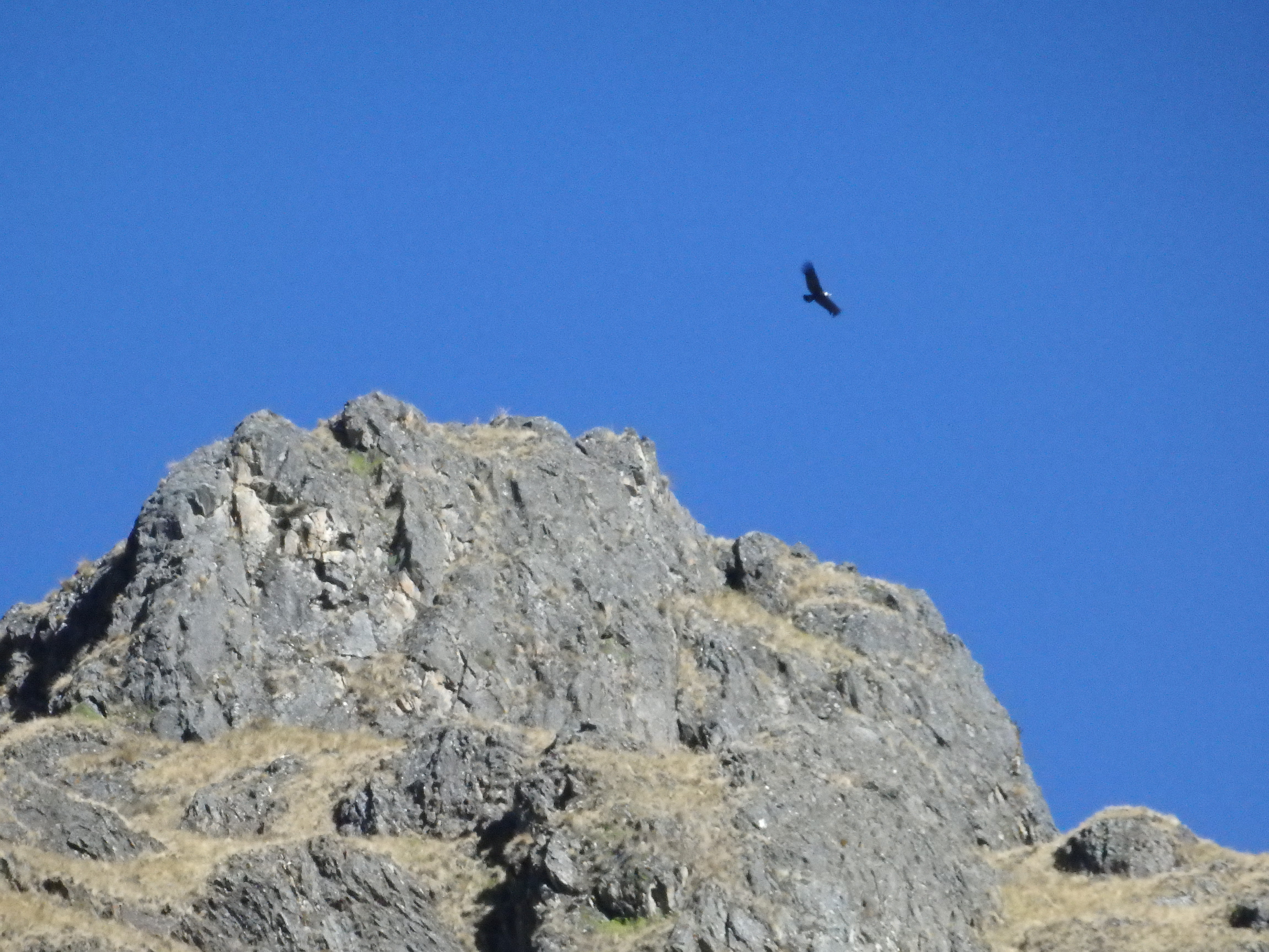 At around 6 we headed off up the valley towards the pass. The path was wide and easy to follow and passed a couple of large groups. They seemed to have more mules than people in the groups. The mules tear up the track, widening it to the size of a road in many places. With the Salkantay trek being one of the most popular ways of getting to Machu Picchu, there are a lot of people on this trek. Walking independently or with Refugios Salkantay seems a much more sustainable way of walking this route. It also means you can walk at your own pace. We sat down and waited for groups to pass so that we could feel like we had the trail to ourselves. While we sat we watched a few condors circling around the nearby hills.