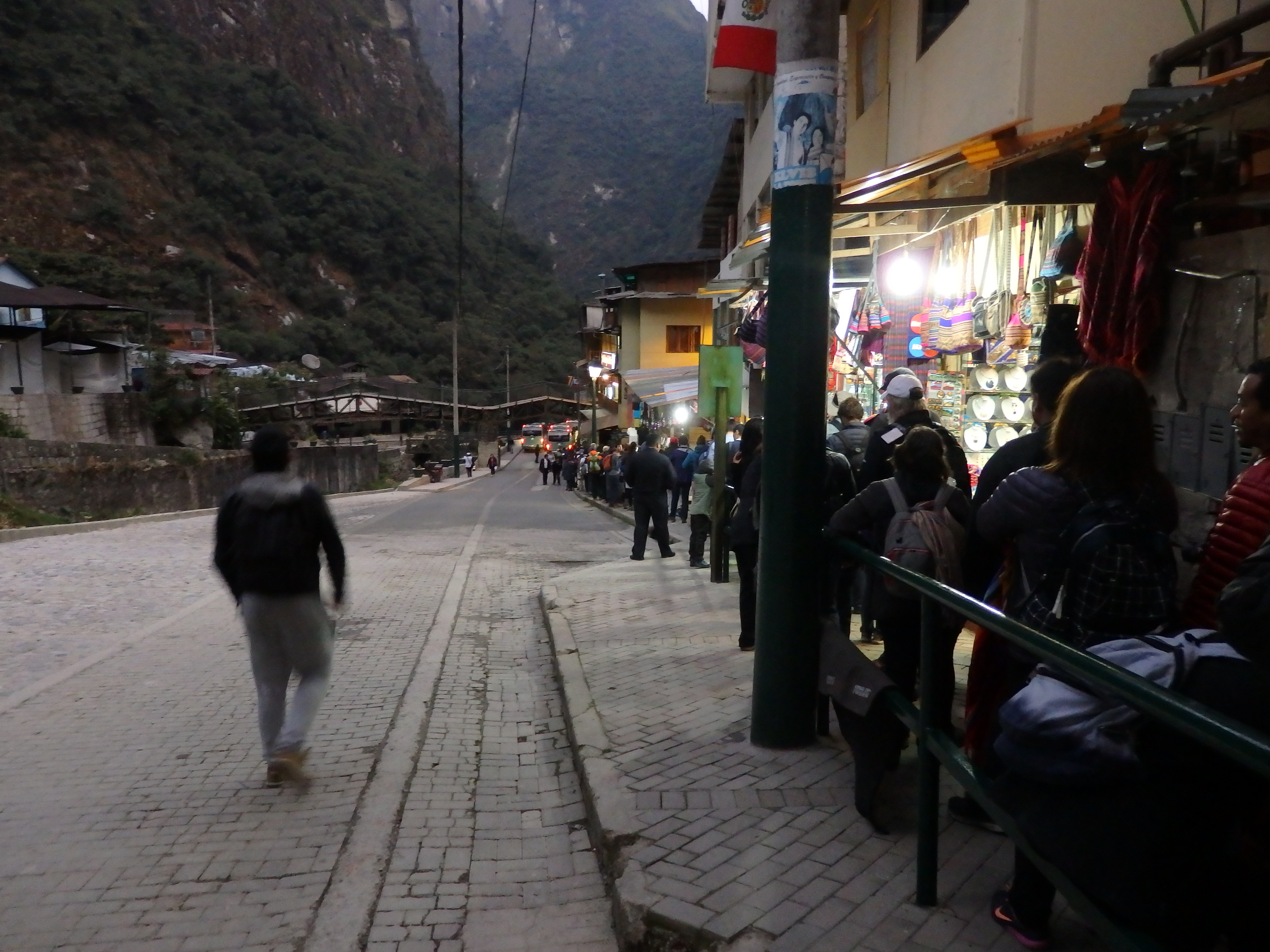 I got an even bigger shock the next morning when we woke up at 4.30am to head up to Machu Picchu. My knee had been playing up so I had decided that we should fork out the $15 to catch the bus up the hill. By the time we got to the line for the bus it was already several thousand people long (it felt like that anyway). I almost turned around and went back to bed.