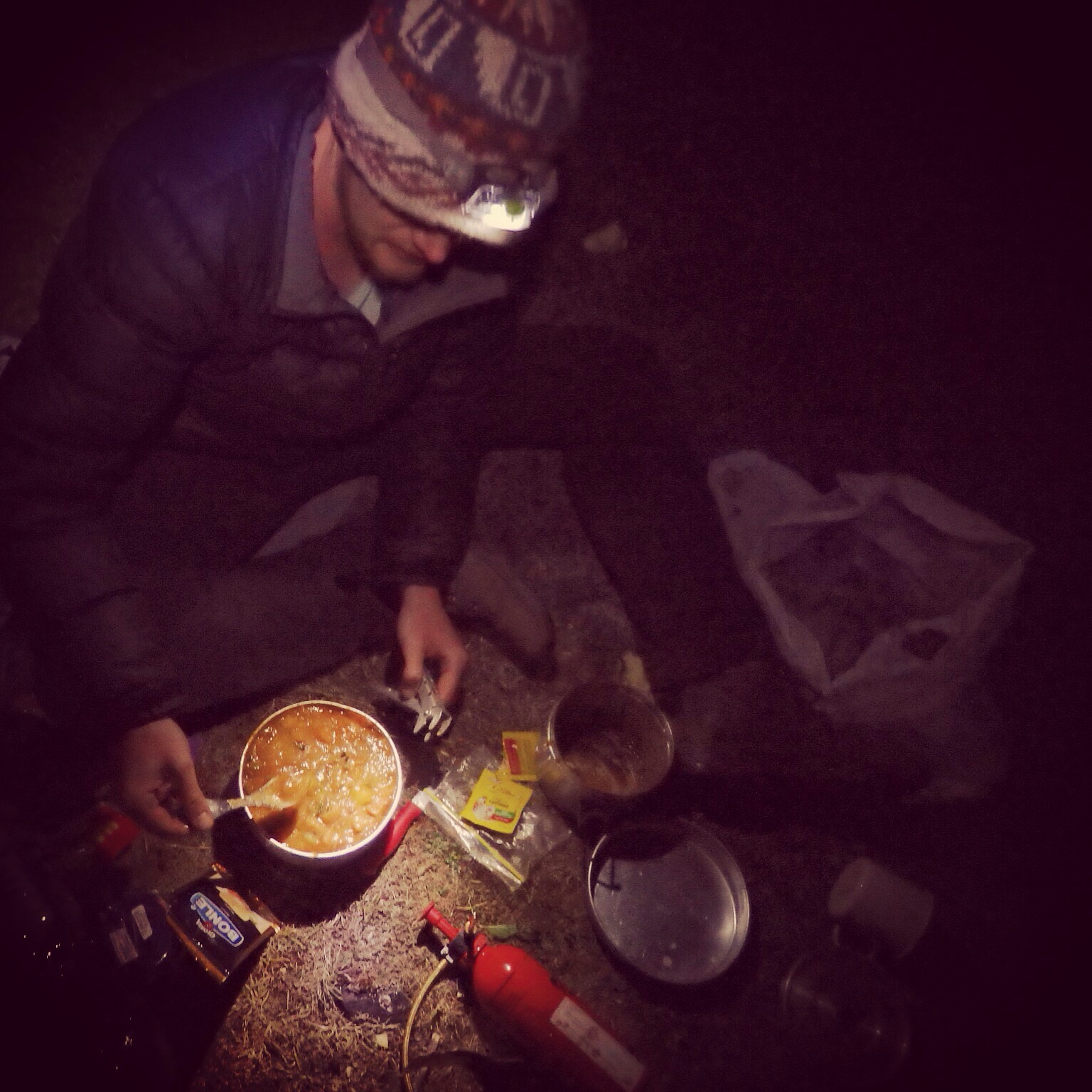 Once we knew where we were it didn’t take us long to find the main trail again, but by now the sun was almost down. We skipped down the hill towards the two glacial lakes where my guide book said we could camp. We followed the river down to the second lake, and crossed a wide flat plain to the edge of the water. There were lots of horses hanging out in the mist, but we couldn’t find anyone to ask where we could camp. We settled on a flat spot right on the edge of the lake, cooked dinner and jumped into bed. While we had been cooking dinner there had been quite a few torch lights travelling across the plain as the locals rounded up their horses for the night. People were yelling to each other, but in Quechua so we had no idea what they were saying. It sort of felt like they might be yelling at us…