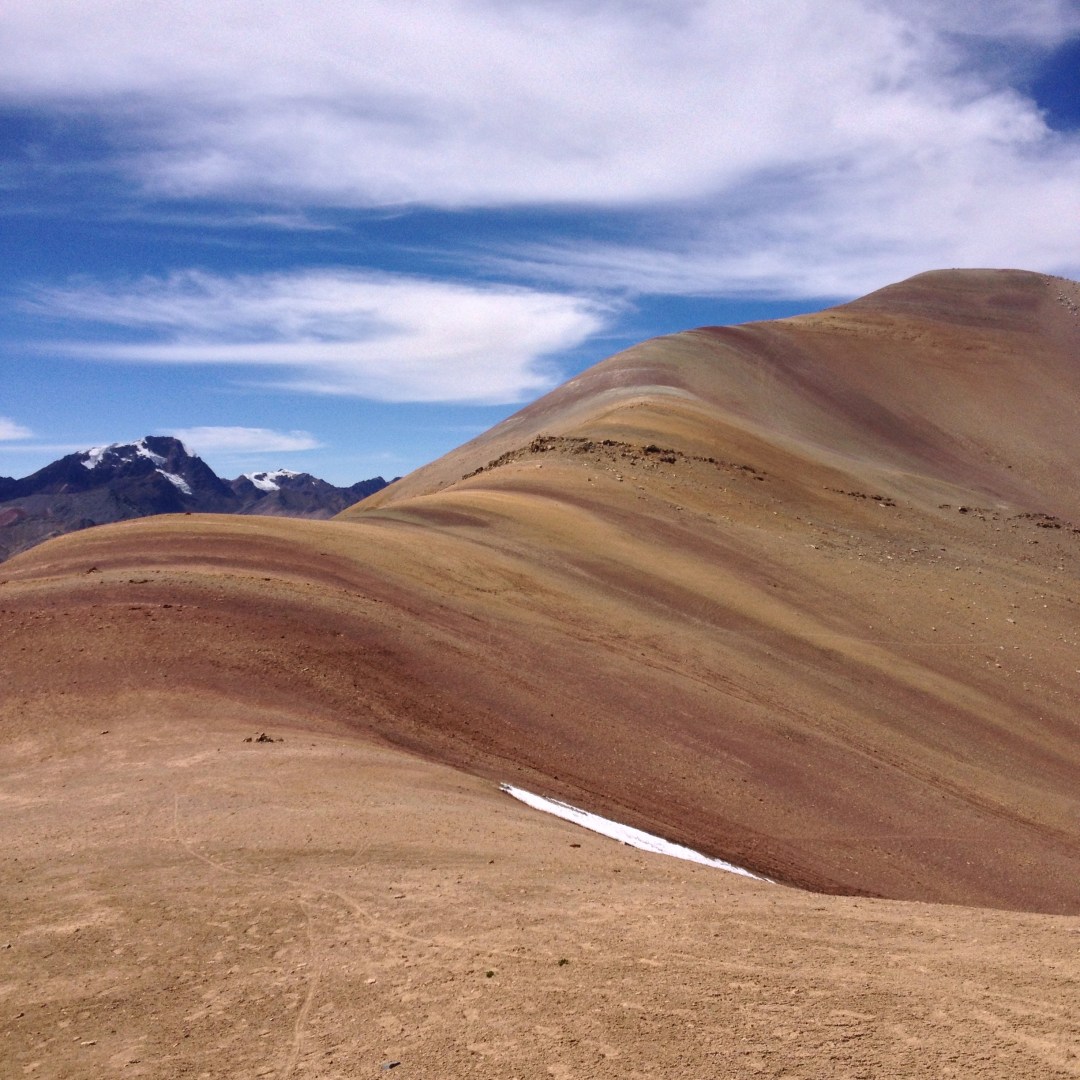 I felt better about missing out on the coloured hill when we got to the pass. It was almost as stunning, with a brightly coloured orange and brown hill off to one side and the towering snowy mountains just to the other side. It was one of the most beautiful places that I have ever been to, and we spent over an hour on the top just admiring the view.